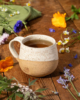 The hand-feel of these mugs is SO COZY, with a hand-pulled handle for that perfect thumb grip. Pull on your fave wool sweater, grab a good novel and get comfy.